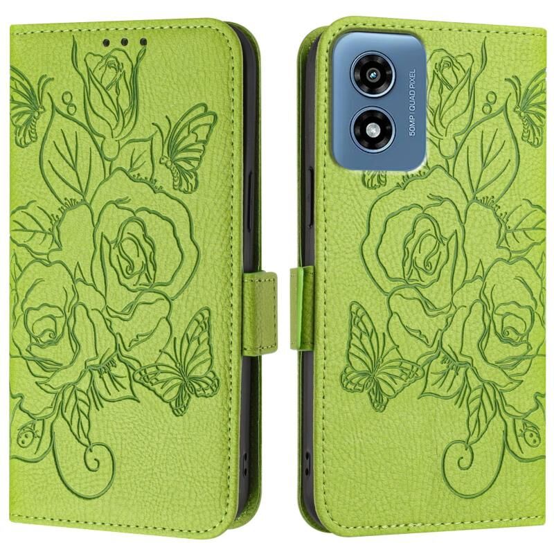 Για Motorola Moto G Play 5G / G 5G 2024 Ανάγλυφο Rose RFID αντικλεπτική δερμάτινη θήκη τηλεφώνου (πράσινο)