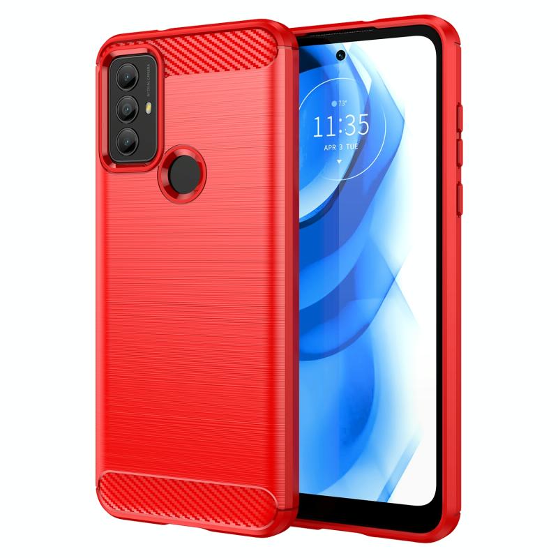 For Motorola Moto G Power 2020 Brushed Texture Carbon Fiber TPU Phone Case(Red)
