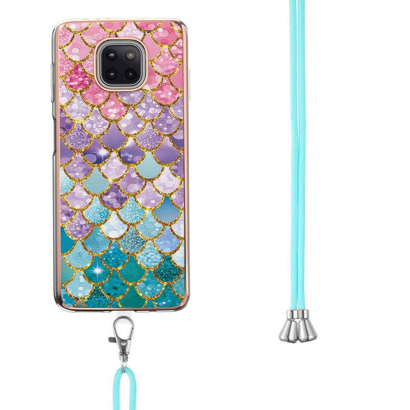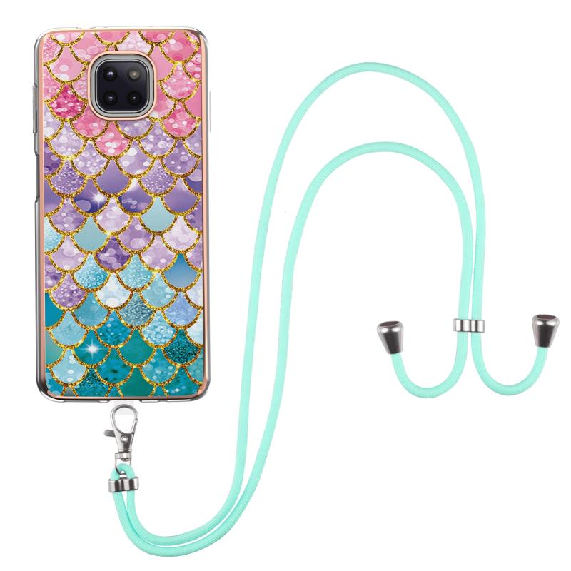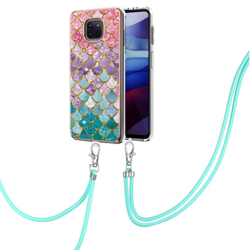 For Motorola Moto G Power 2021 Electroplating Pattern IMD TPU Shockproof Case with Neck Lanyard(Colorful Scales)