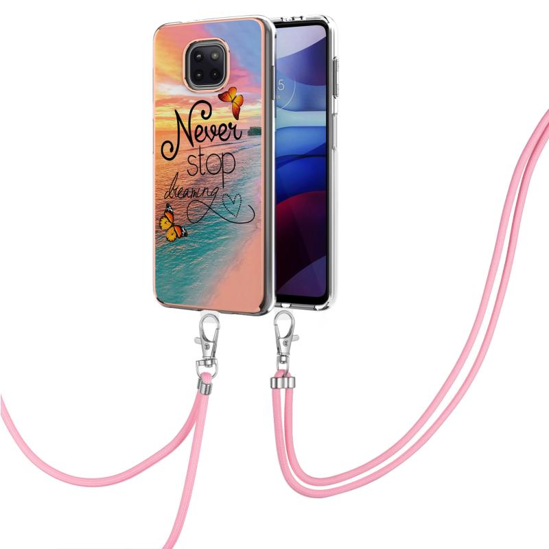 For Motorola Moto G Power 2021 Electroplating Pattern IMD TPU Shockproof Case with Neck Lanyard(Dream Chasing Butterfly)
