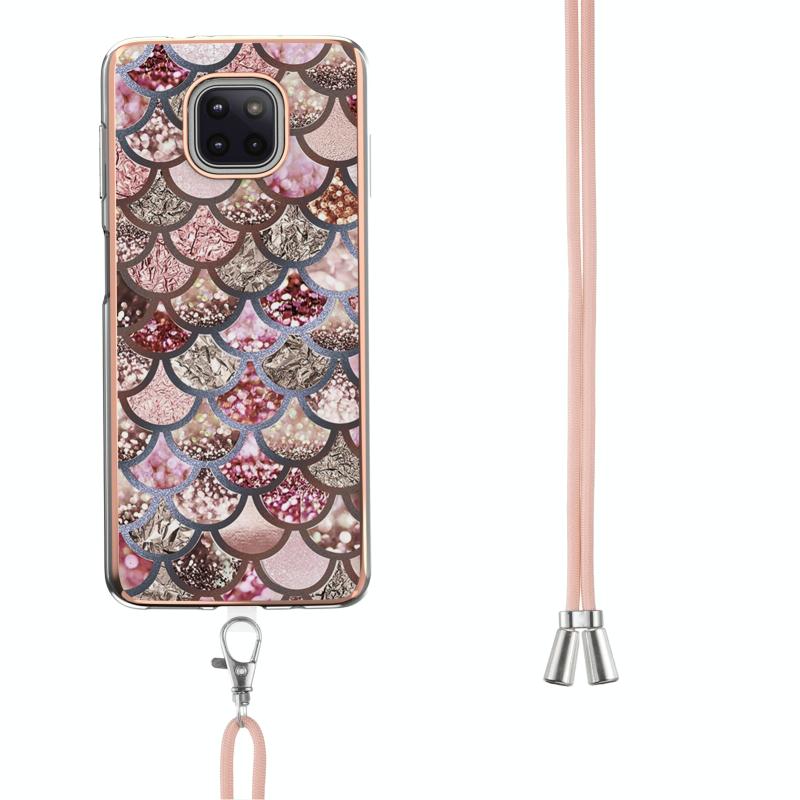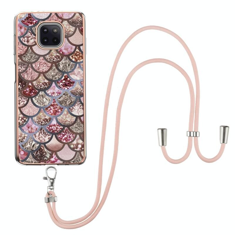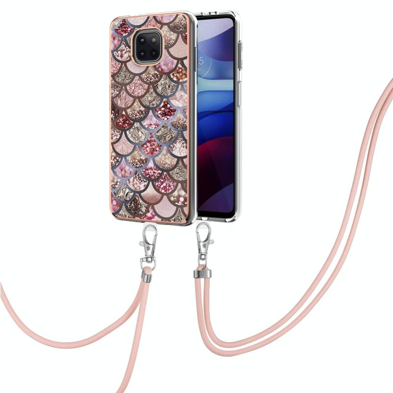 For Motorola Moto G Power 2021 Electroplating Pattern IMD TPU Shockproof Case with Neck Lanyard(Pink Scales)