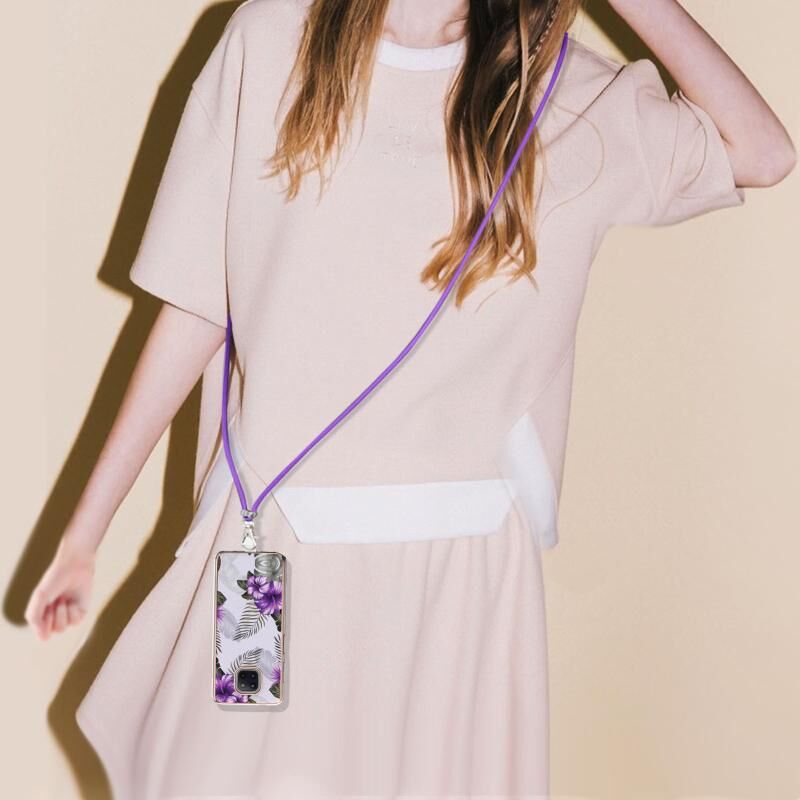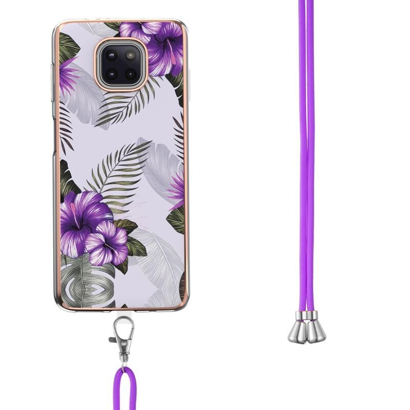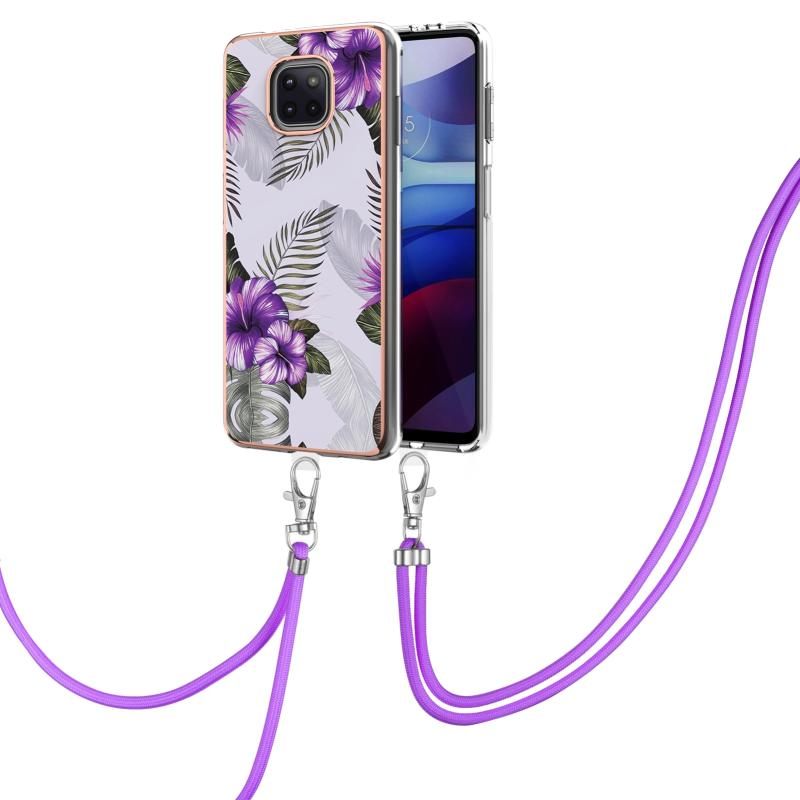 For Motorola Moto G Power 2021 Electroplating Pattern IMD TPU Shockproof Case with Neck Lanyard(Purple Flower)