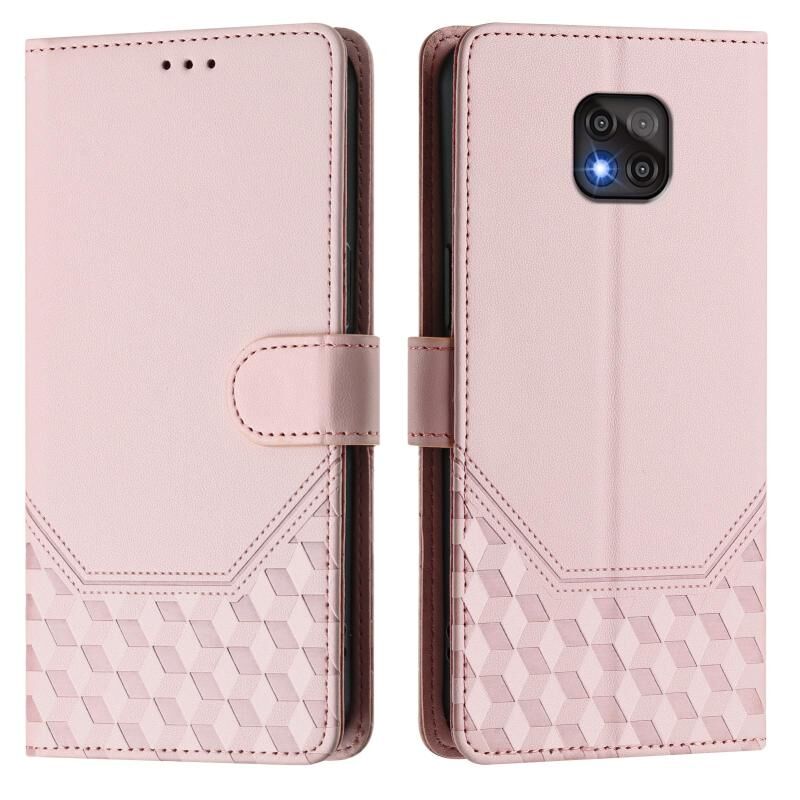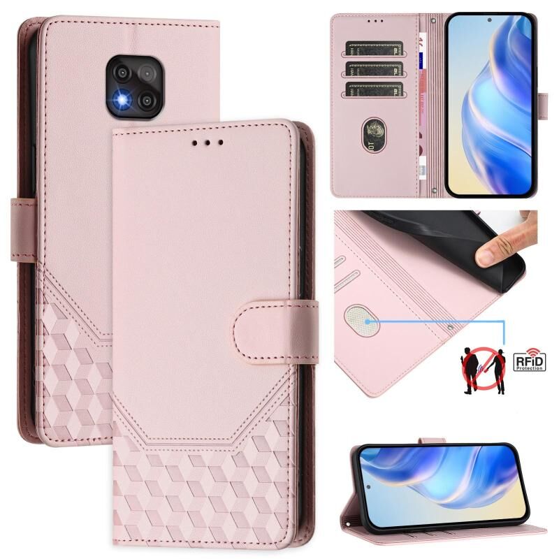 Για Motorola Moto G Power 2021 Honeycomb ανάγλυφη RFID δερμάτινη θήκη τηλεφώνου (ρόζ)
