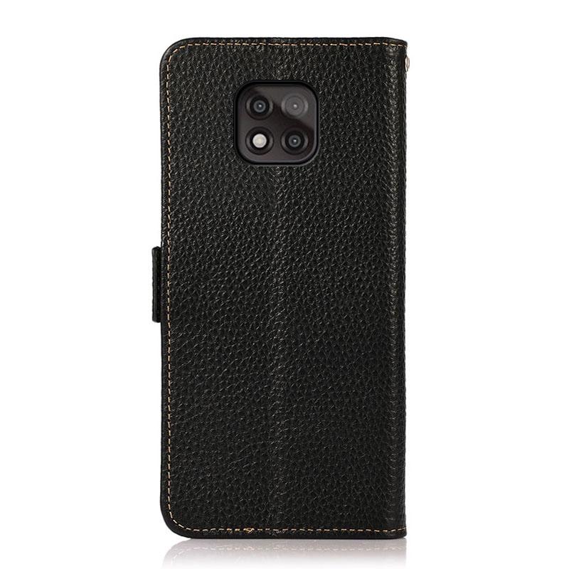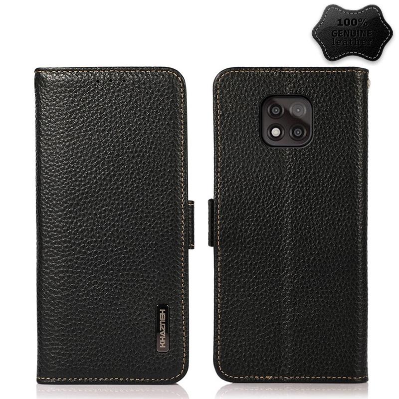 For Motorola Moto G Power 2021 KHAZNEH Side-Magnetic Litchi Genuine Leather RFID Case(Black)