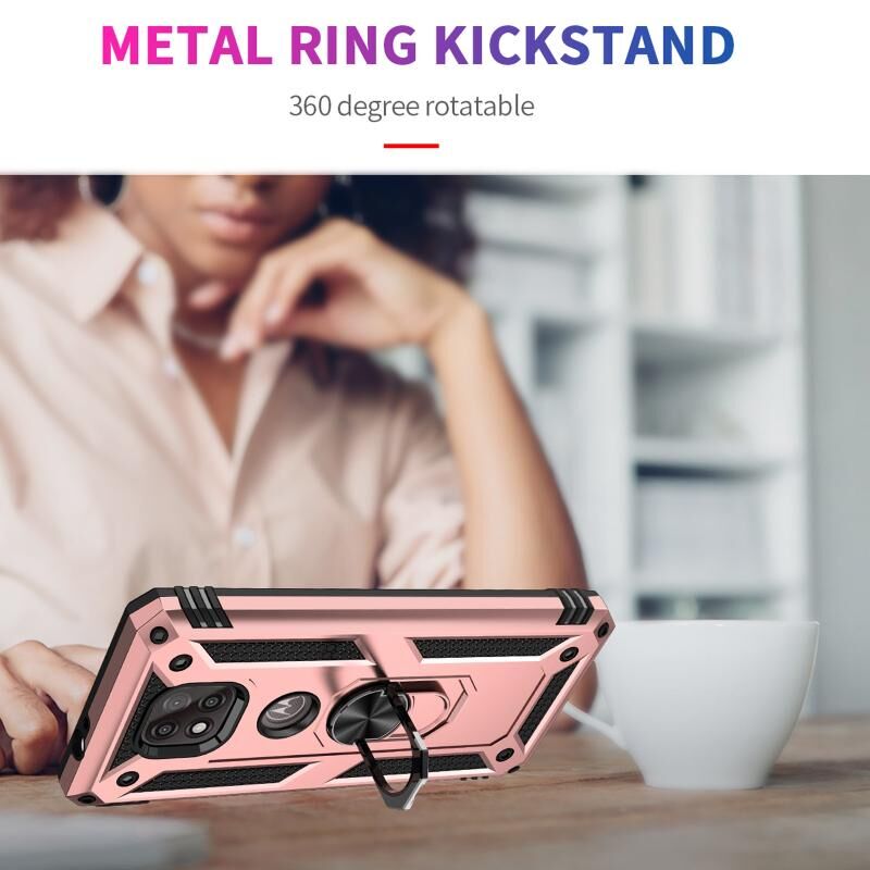 Για Motorola Moto G Power (2021) Αδιάβροχη θήκη TPU + PC με 360 μοίρες περιστρεφόμενη θήκη (ροζ χρυσό)