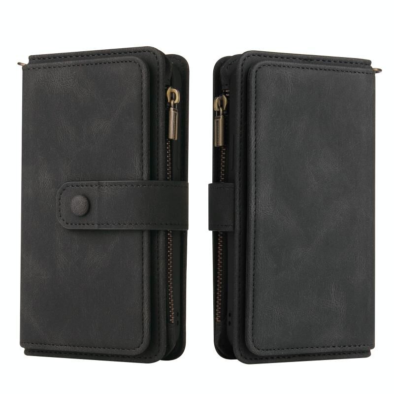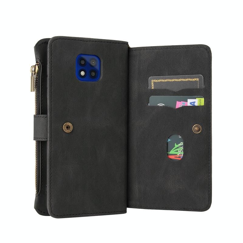 Για Motorola Moto G Power (2021) Skin Feel PU + TPU Οριζόντια Flip δερμάτινη θήκη με θήκη & 15 κάρτες Slot & πορτοφόλι & φερμουάρ τσέπη & Lanyard (Μαύρο)