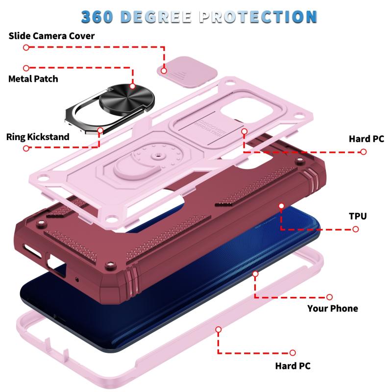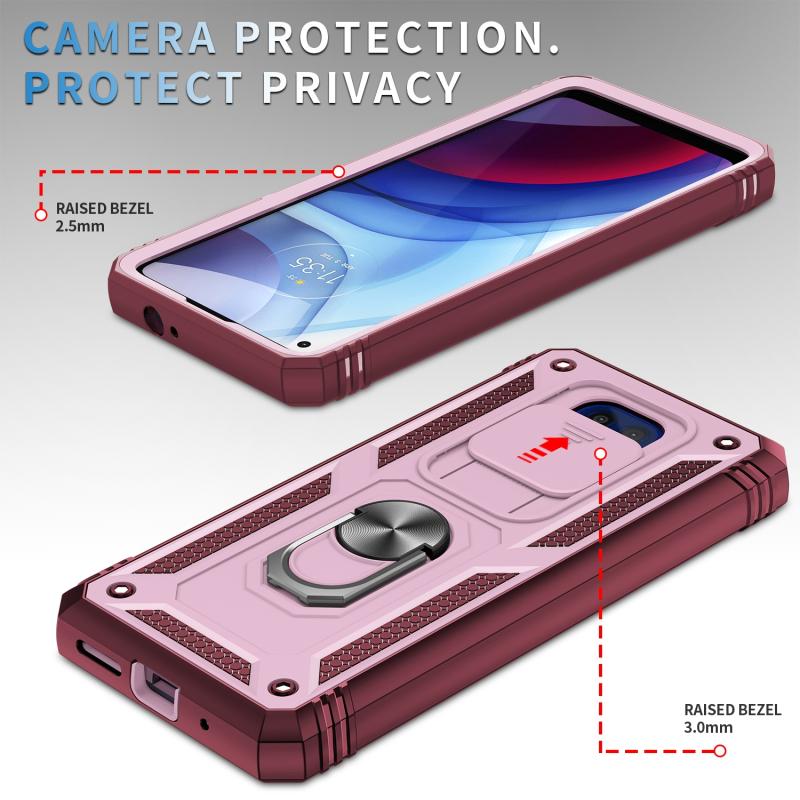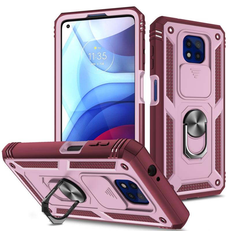 For Motorola Moto G Power 2021 Sliding Camera Cover TPU + PC Phone Case(Pink+Red)