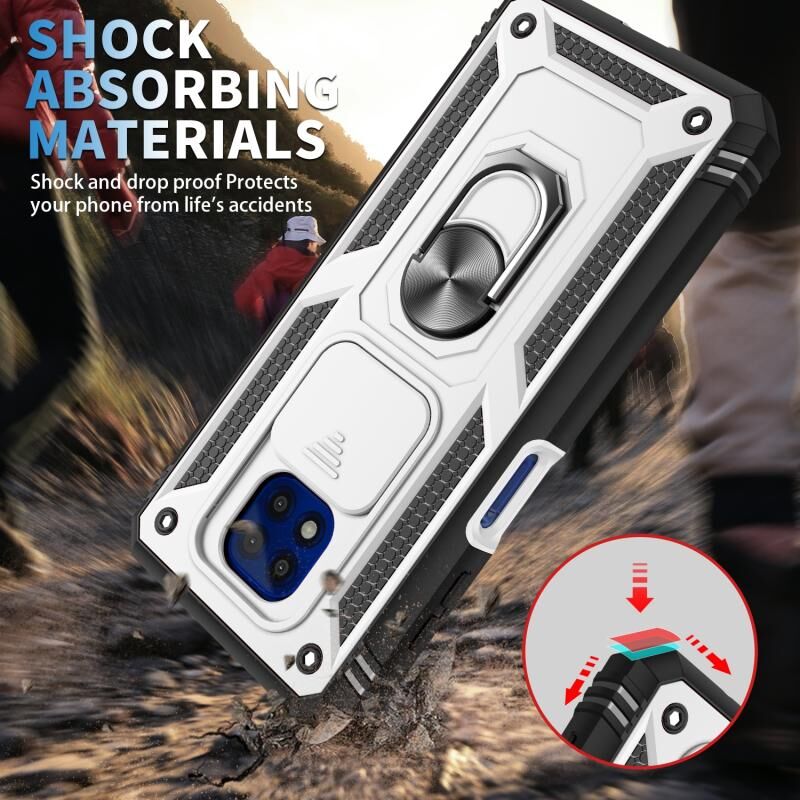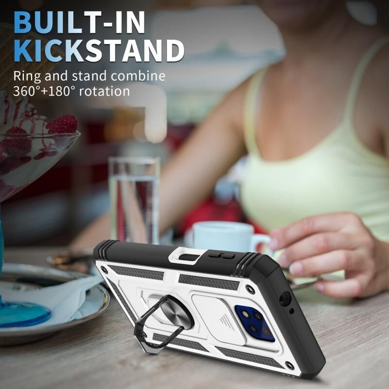 Θήκη τηλεφώνου για Motorola Moto G Power 2021 με ολισθαίνουσα κάλυψη κάμερας, TPU + PC (Λευκό+Μαύρο)