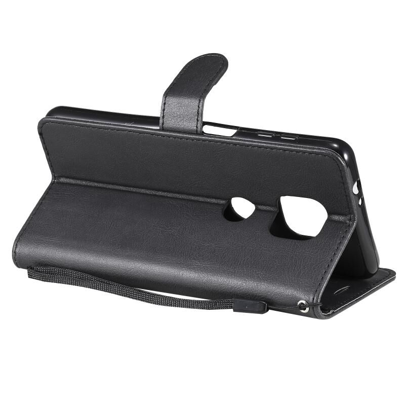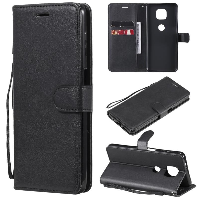 Για Motorola Moto G Power 2021 Αμιγές χρώμα οριζόντια Flip προστατευτική δερμάτινη θήκη με θήκη & υποδοχές για κάρτες & πορτοφόλι & πλαίσιο φωτογραφιών & κορδόνι (Μαύρο)