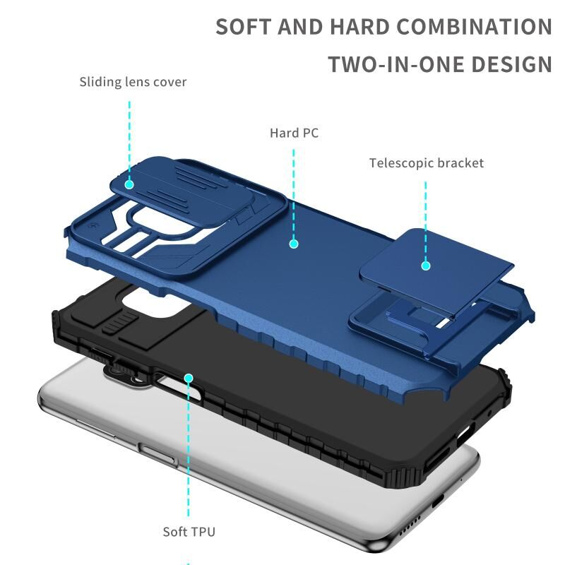 Για Motorola Moto G Power 2021 Στερεοσκοπική θήκη τηλεφώνου με συρόμενη θήκη Camshield (μπλε)