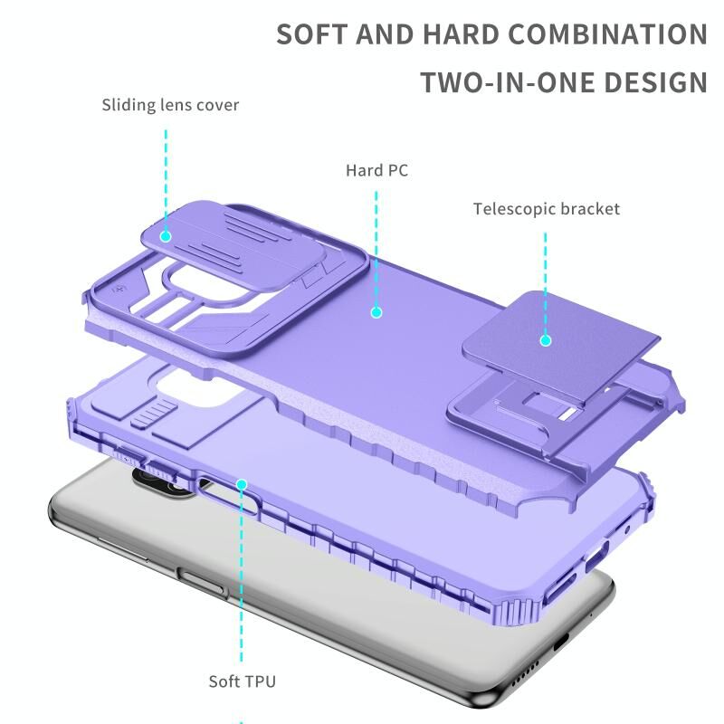 Για Motorola Moto G Power 2021 Στερεοσκοπική θήκη τηλεφώνου με συρόμενη θήκη Camshield (μωβ)