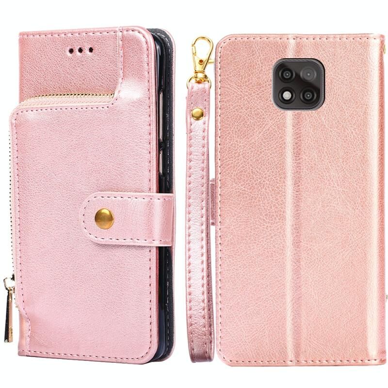Για Motorola Moto G Power (2021) Τσάντα φερμουάρ PU + TPU Οριζόντια Flip δερμάτινη θήκη με θήκη για κάρτες, πορτοφόλι και κορδόνι (χρυσό)