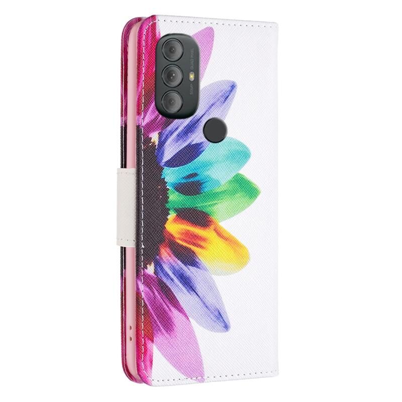 Θήκη τηλεφώνου δερμάτινη οριζόντιας αναδίπλωσης με σχέδιο πολύχρωμης ζωγραφικής για Motorola Moto G Power 2022 (Ηλίανθος)