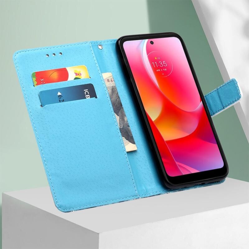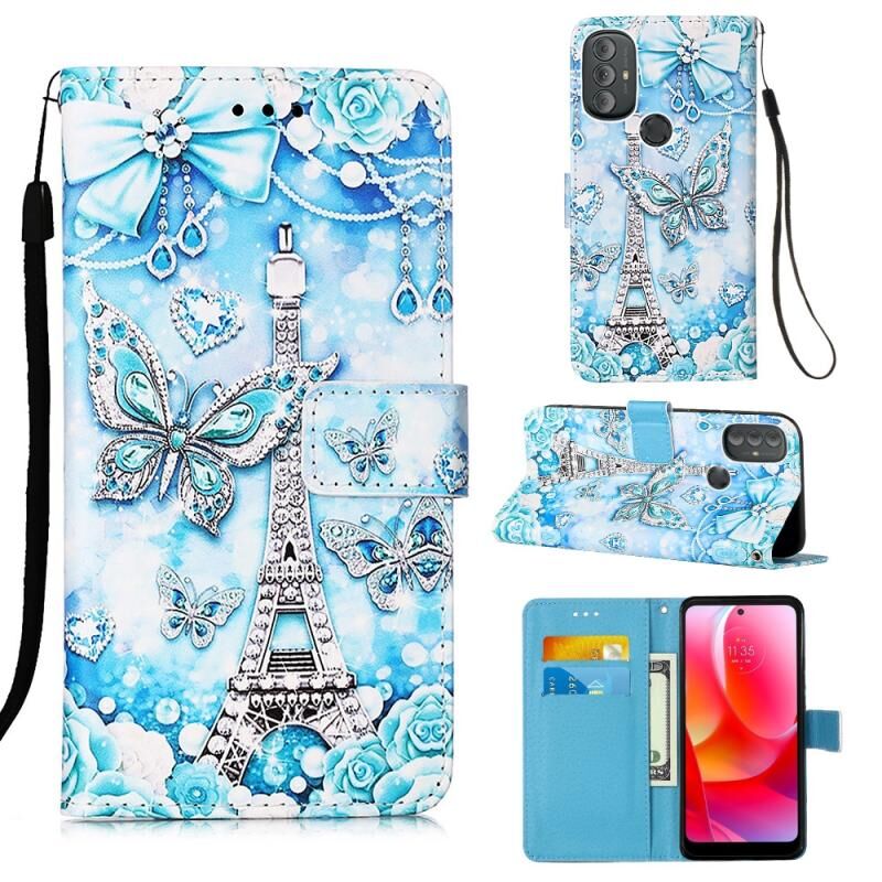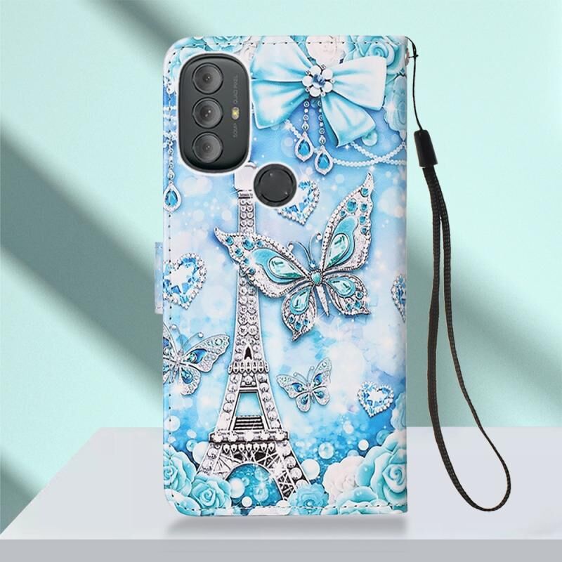 Θήκη τηλεφώνου από δέρμα με απλή ύφανση και πολύχρωμο σχέδιο για Motorola Moto G Power 2022 (Πύργος Πεταλούδας)
