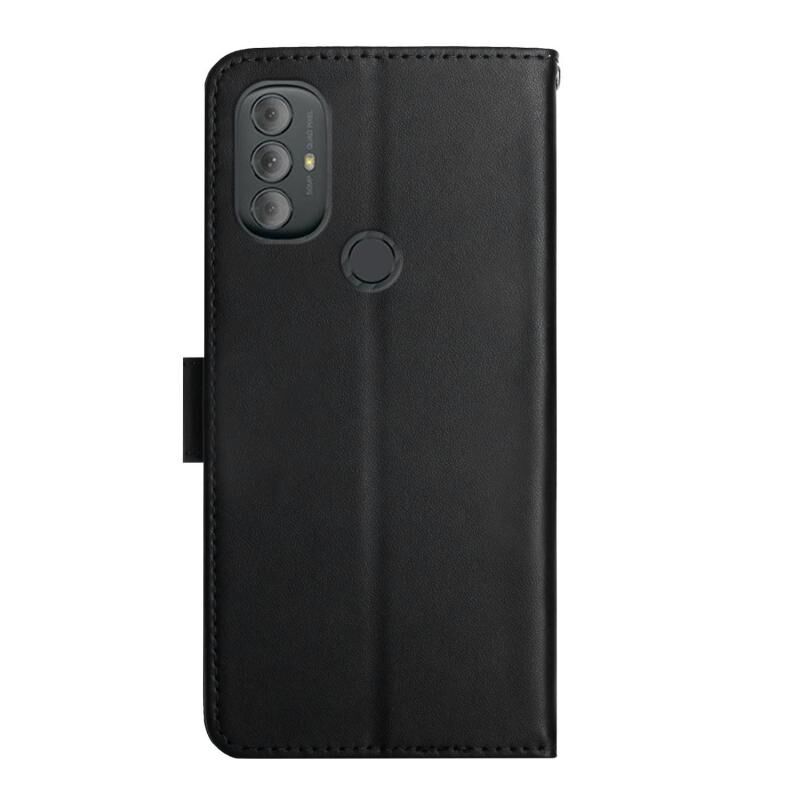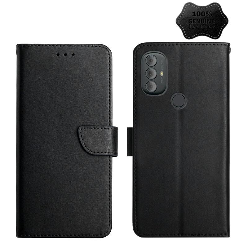 Θήκη τηλεφώνου οριζόντιας αναδίπλωσης από γνήσιο δέρμα για Motorola Moto G Power 2022, ανθεκτική στα δακτυλικά αποτυπώματα (Μαύρο)