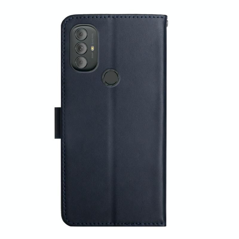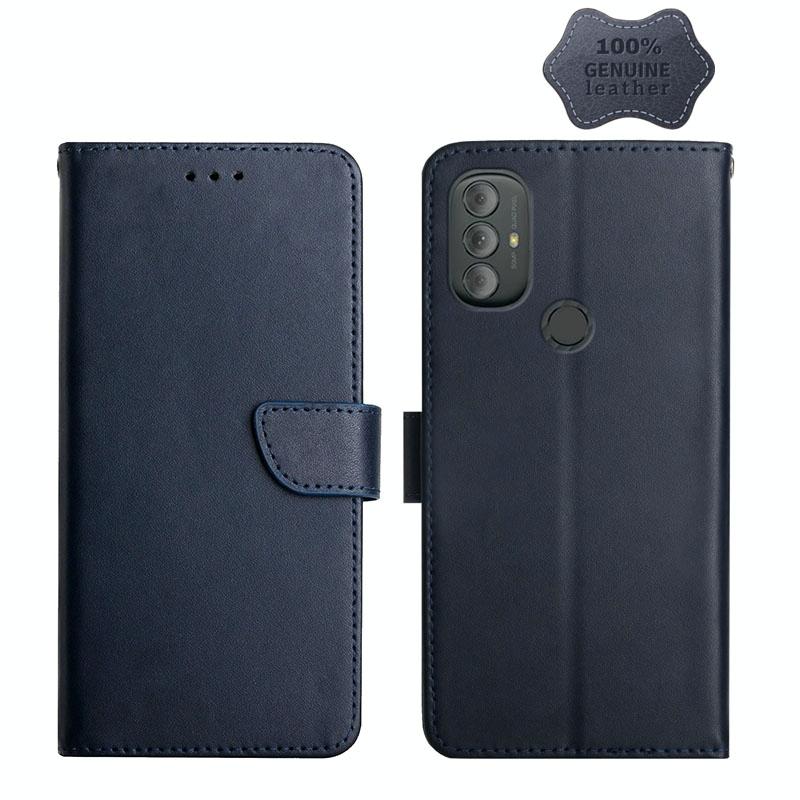 Θήκη τηλεφώνου οριζόντιας αναδίπλωσης από γνήσιο δέρμα για Motorola Moto G Power 2022, ανθεκτική στα δακτυλικά αποτυπώματα (Μπλε)