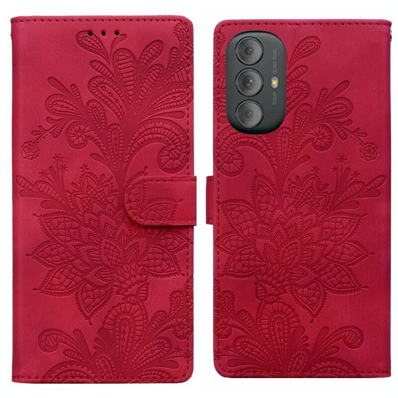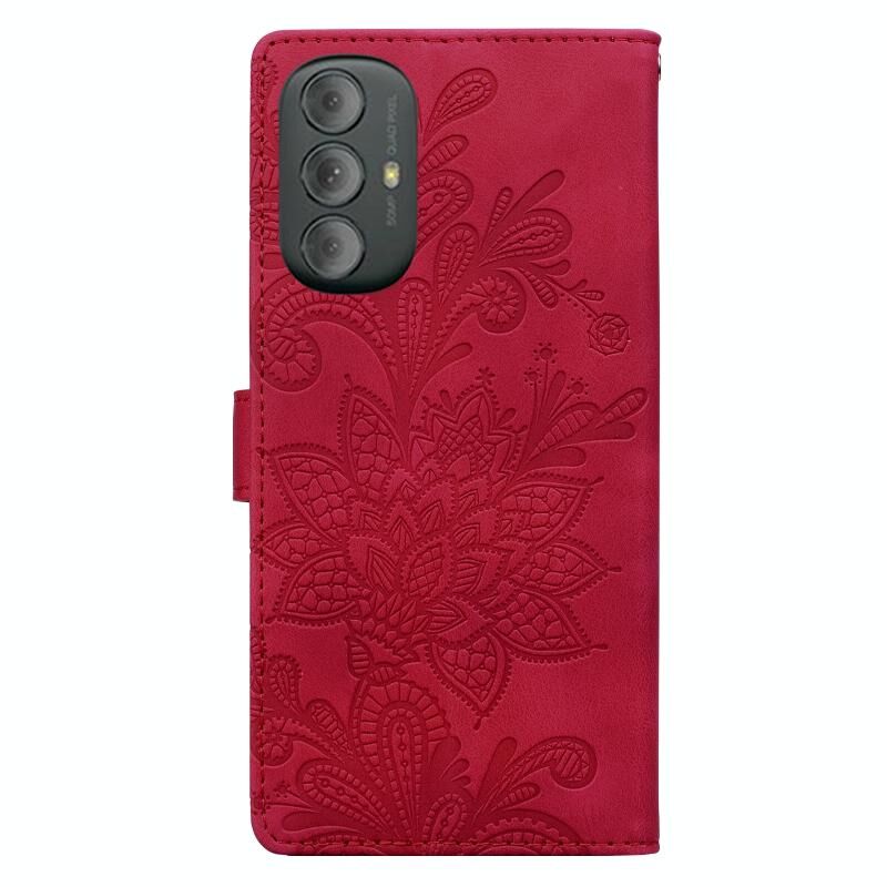 Θήκη τηλεφώνου για Motorola Moto G Power 2022 με δαντελένιο λουλουδάτο ανάγλυφο, μαγνητικό κούμπωμα και λουρί καρπού (Πράσινο)