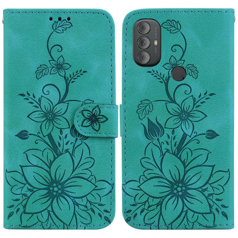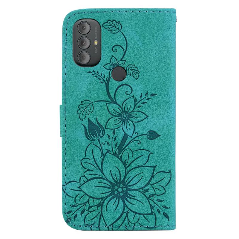 For Motorola Moto G Power 2022 Lily Embossed Leather Phone Case(Green)