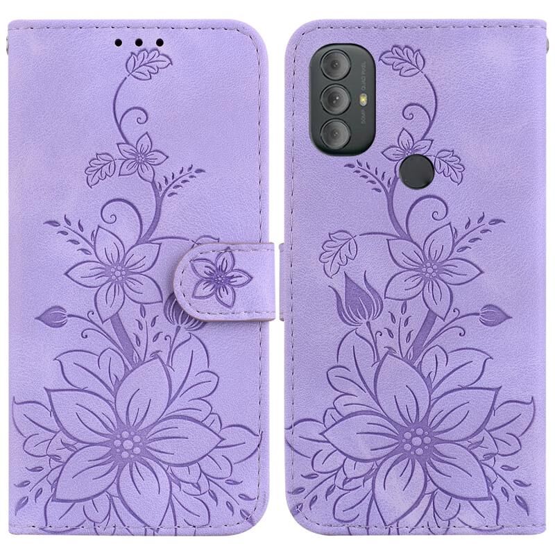 Θήκη τηλεφώνου από δέρμα με ανάγλυφο λουλουδιού Lily για Motorola Moto G Power 2022 (Πράσινο)