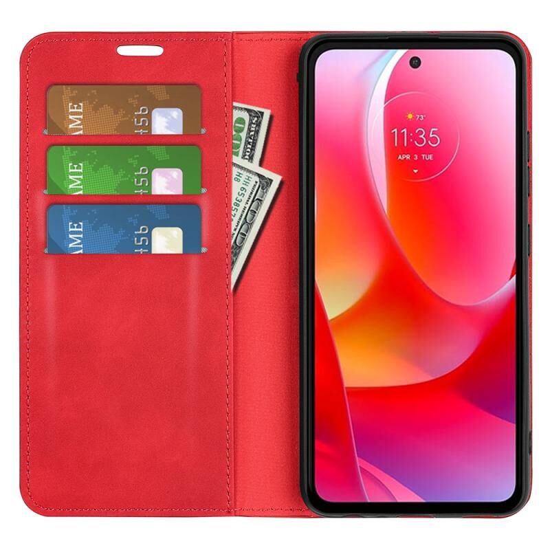 Για Motorola Moto G Power 2022 Retro-skin Μαγνητική δερμάτινη θήκη τηλεφώνου αναρρόφησης με θήκη & υποδοχές καρτών & πορτοφόλι (κόκκινο)