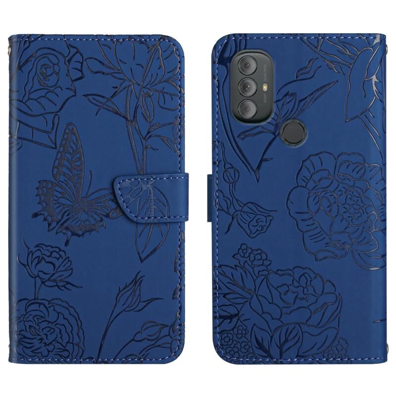 Θήκη τηλεφώνου από δέρμα με ανάγλυφο σχέδιο πεταλούδας και παιώνιας για Motorola Moto G Power 2022 (Κόκκινο)