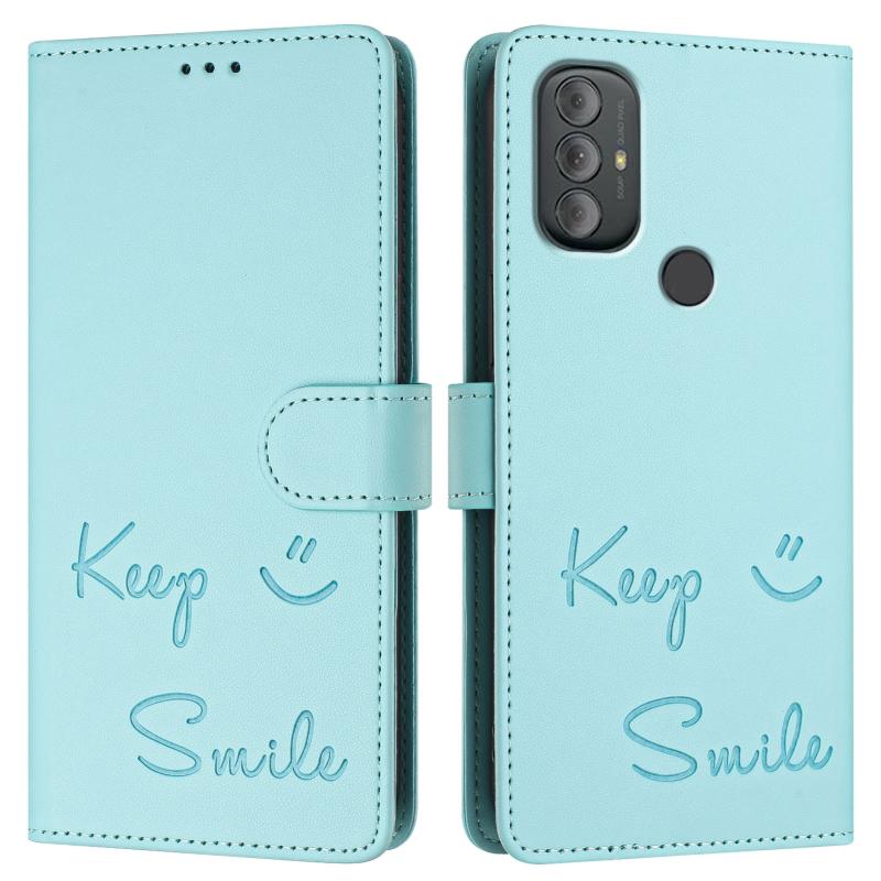 For Motorola Moto G Power 2022 Smile Embossing RFID Leather Phone Case(Mint Green)