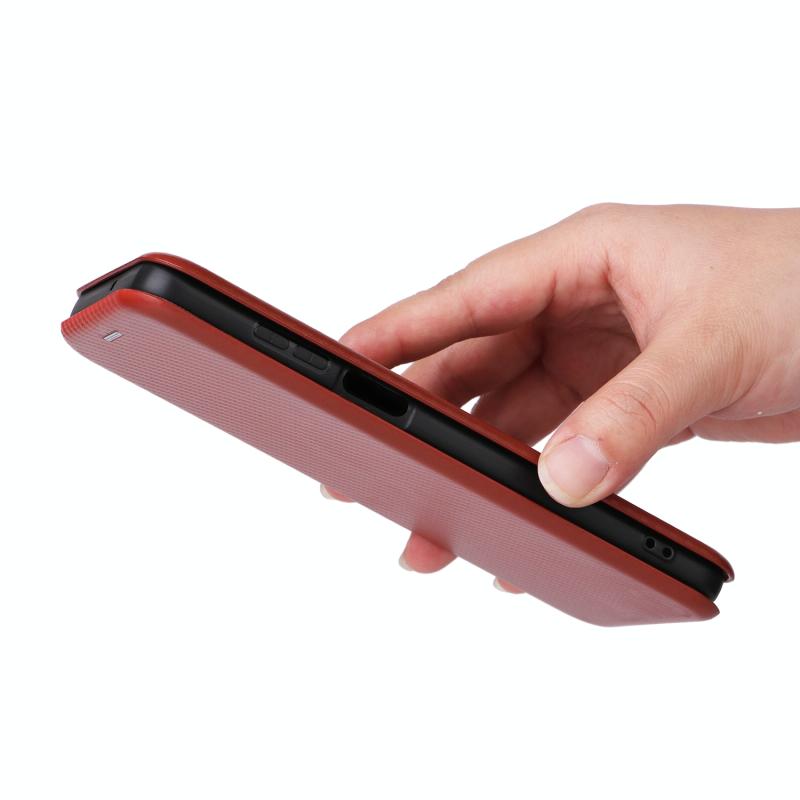 Θήκη τηλεφώνου από δέρμα με υφή ανθρακονήματος για Motorola Moto G Power 2023 (Καφέ)