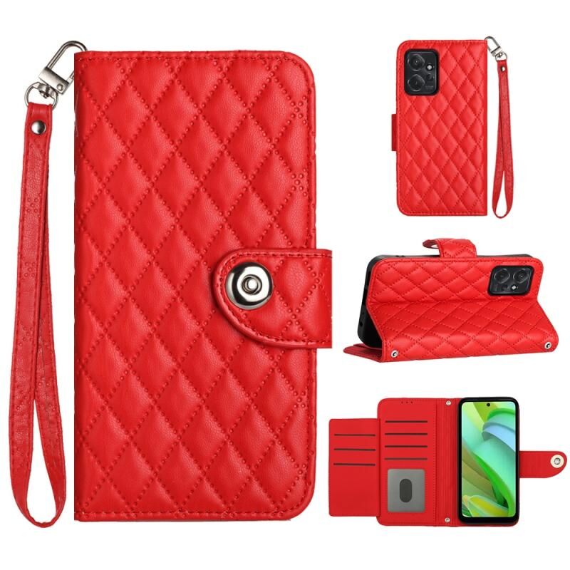 Για Motorola Moto G Power 2023 Rhombic Texture Flip δερμάτινη θήκη τηλεφώνου με κορδόνι (κόκκινο)