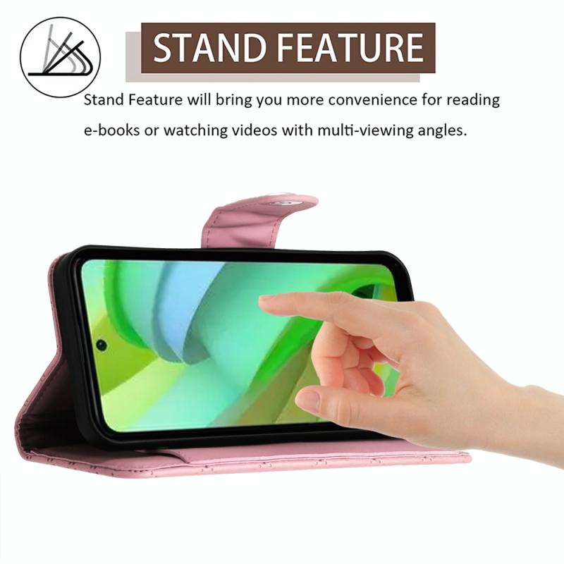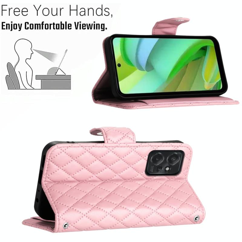 For Motorola Moto G Power 2023 Rhombic Texture Flip Leather Phone Case with Long Lanyard(Pink)