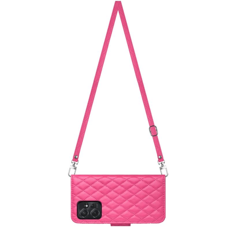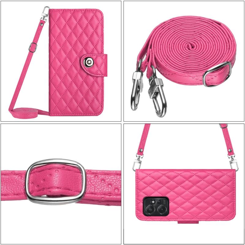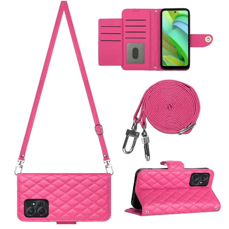 For Motorola Moto G Power 2023 Rhombic Texture Flip Leather Phone Case with Long Lanyard(Rose Red)