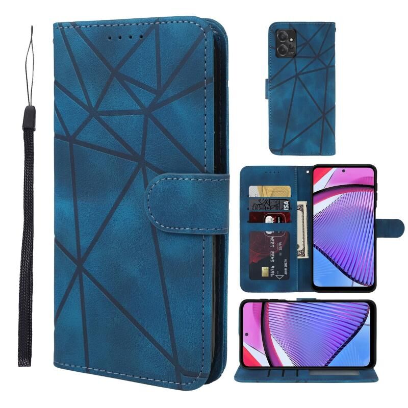 Για Motorola Moto G Power 2023 Skin Feel γεωμετρικές γραμμές δερμάτινη θήκη τηλεφώνου (μπλε)