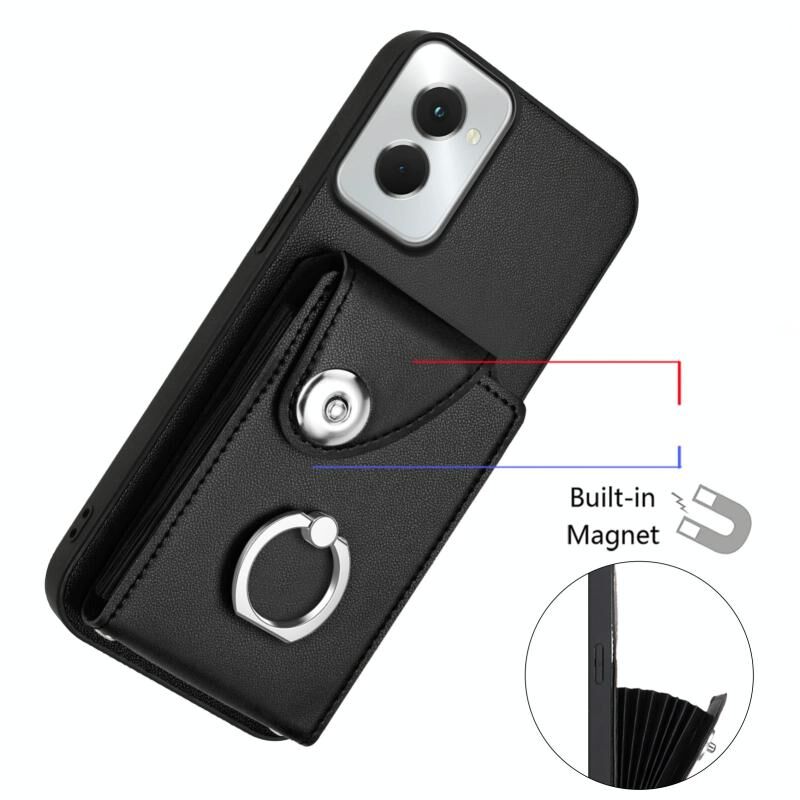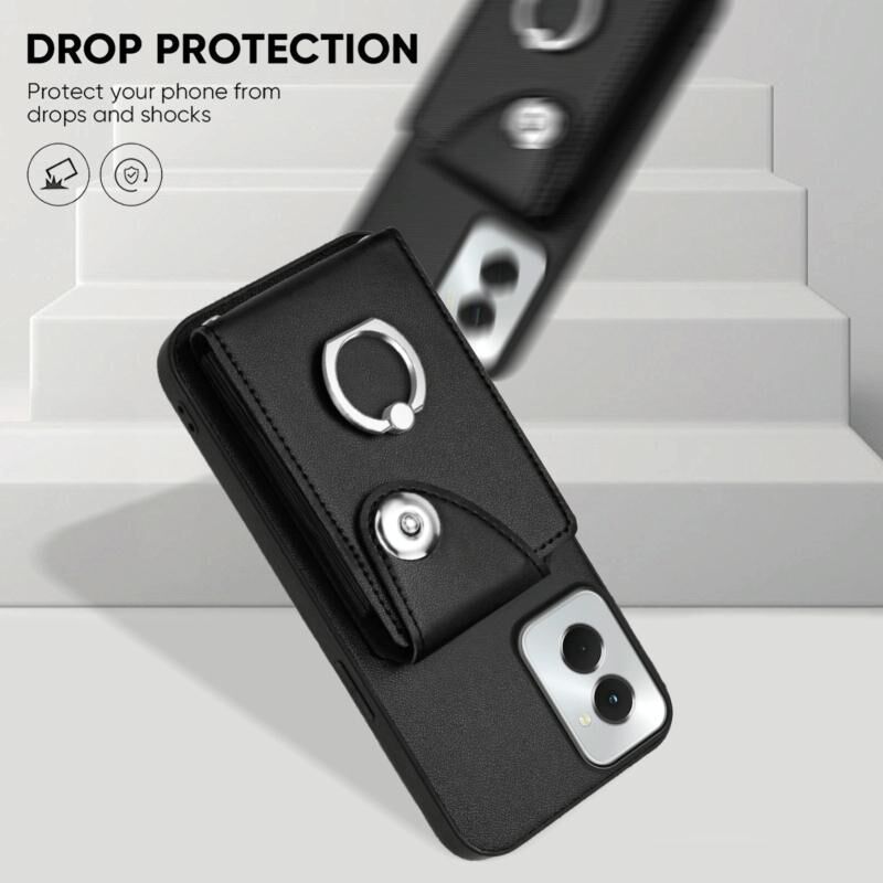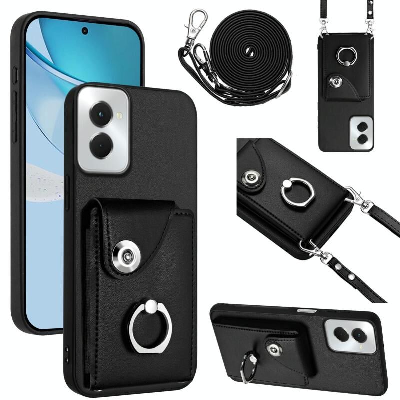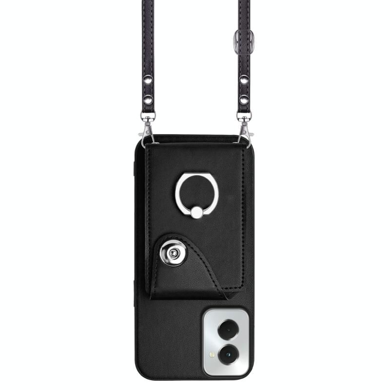 Για Motorola Moto G Power 2024 5G Οργανική κάρτα τσάντα δαχτυλίδι κάτοχος θήκη τηλεφώνου με μακρύ κορδόνι (Μαύρο)
