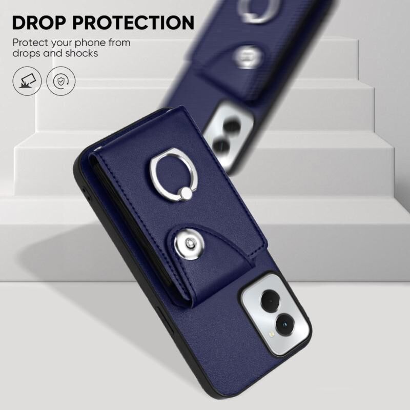 Για Motorola Moto G Power 2024 5G Οργανική κάρτα τσάντα δαχτυλίδι κάτοχος υπόθεση τηλεφώνου με μακρύ κορδόνι (Μπλε)