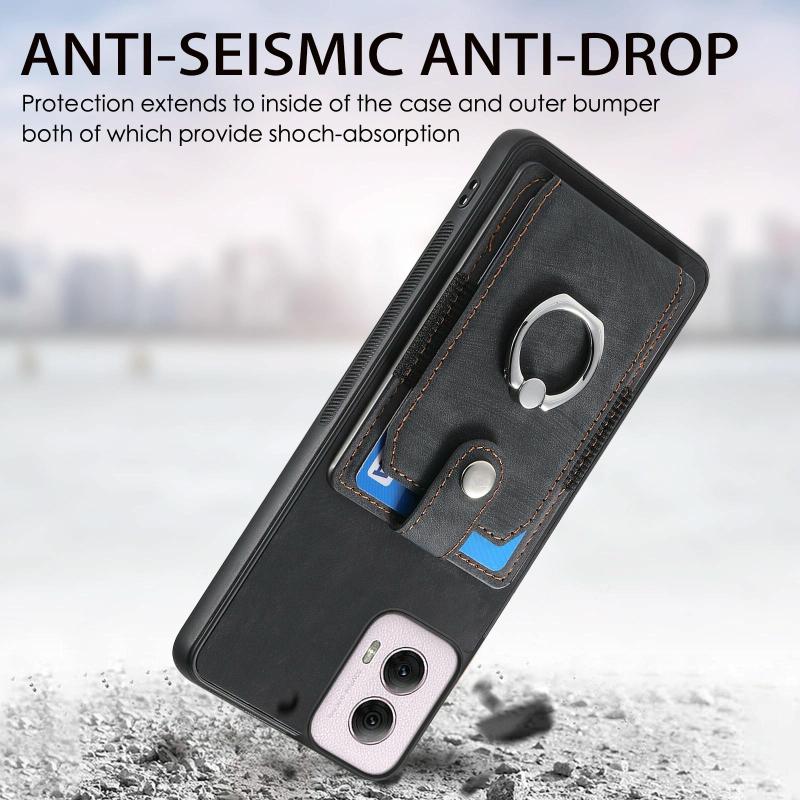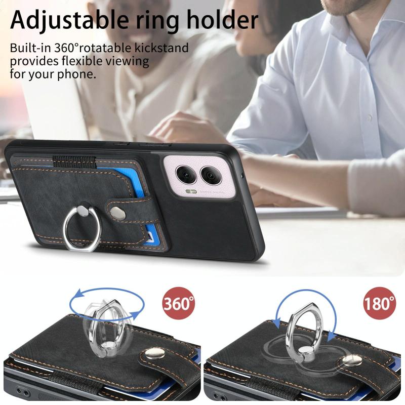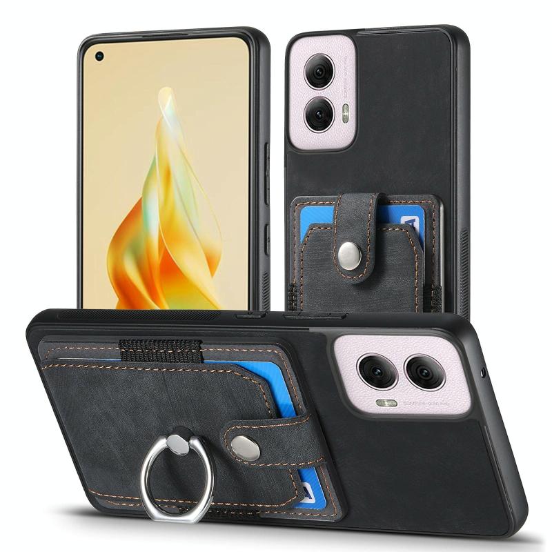 Θήκη κινητού τηλεφώνου με κάρτες και δαχτυλίδι, αίσθηση ρετρό δέρματος για Motorola Moto G Power 2024 5G (Μωβ)