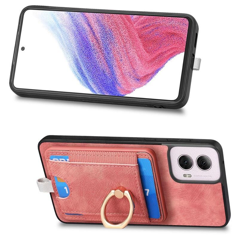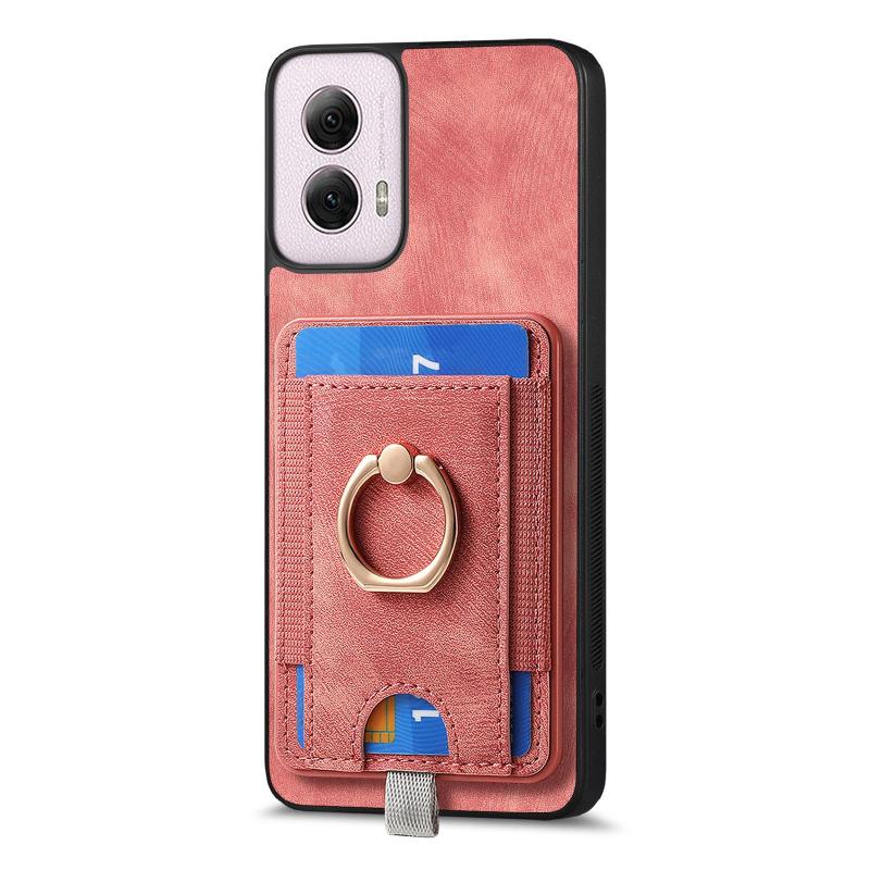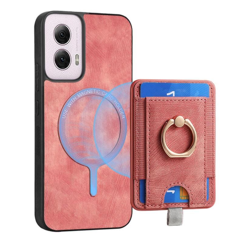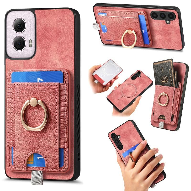 Για Motorola Moto G Power 2024 5G Δερμάτινη Θήκη με Κάρτες & Μαγνήτη (Ροζ)