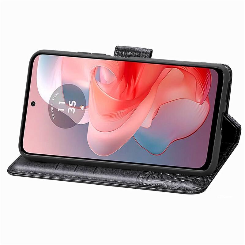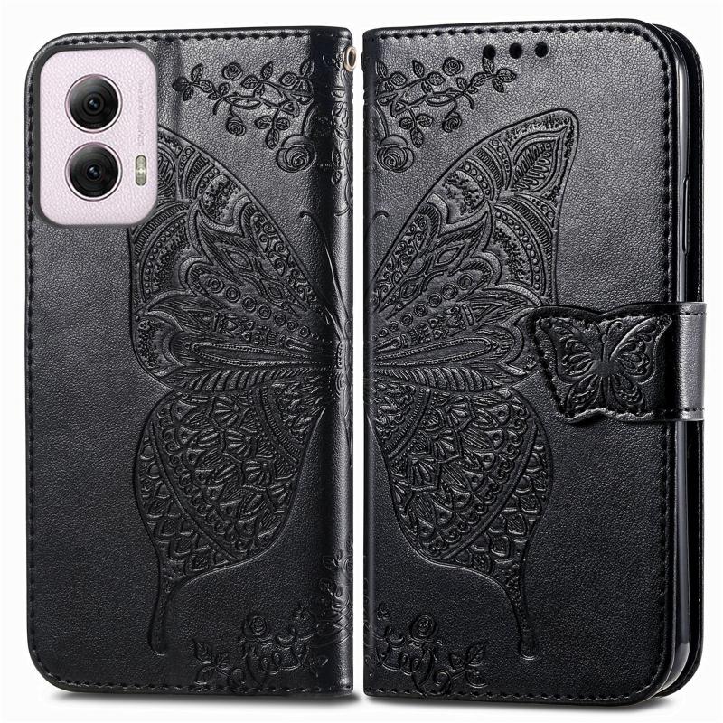 Θήκη κινητού τηλεφώνου από δέρμα με ανάγλυφο σχέδιο πεταλούδας και λουλουδιών για Motorola Moto G Power 2024 (Μαύρο)