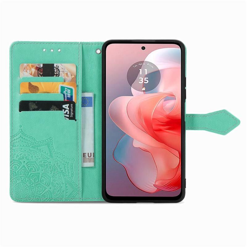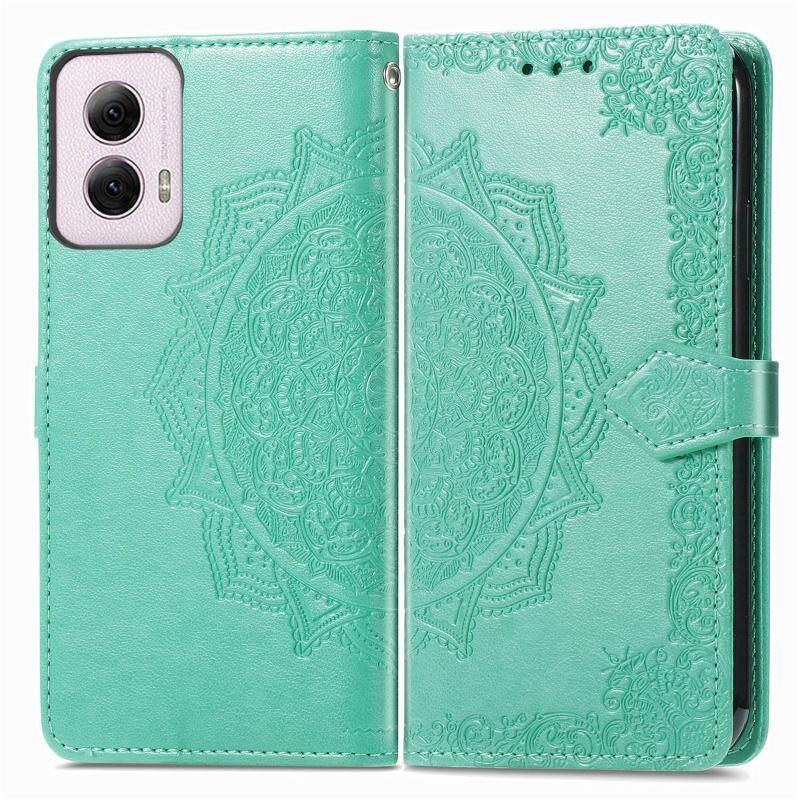 Για Motorola Moto G Power 2024 Mandala λουλούδι ανάγλυφη δερμάτινη θήκη τηλεφώνου (πράσινο)