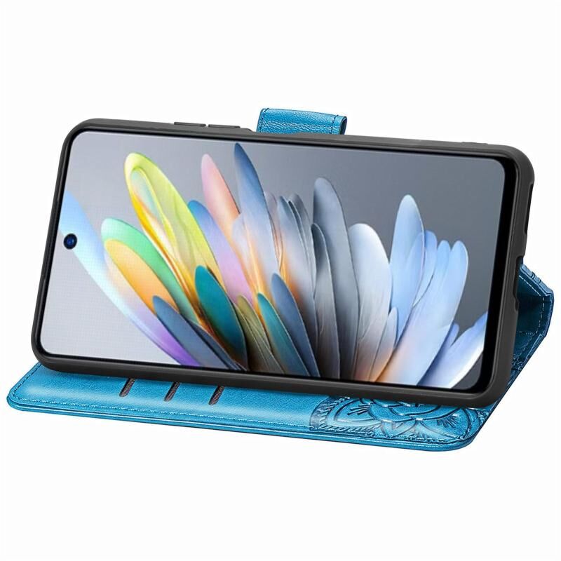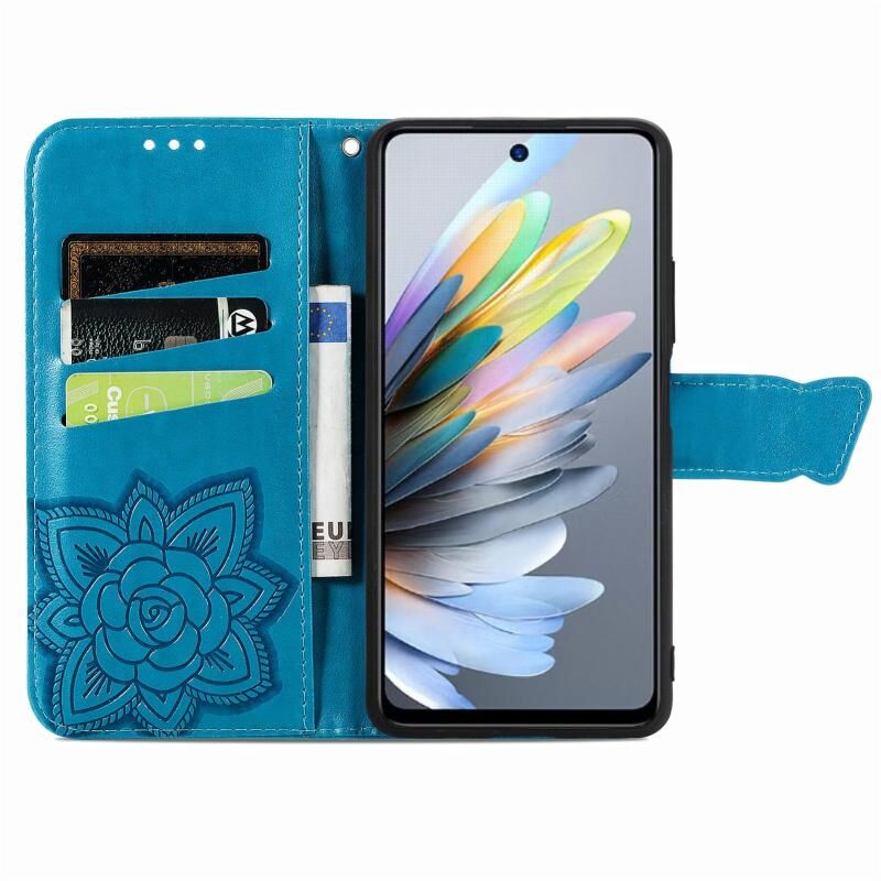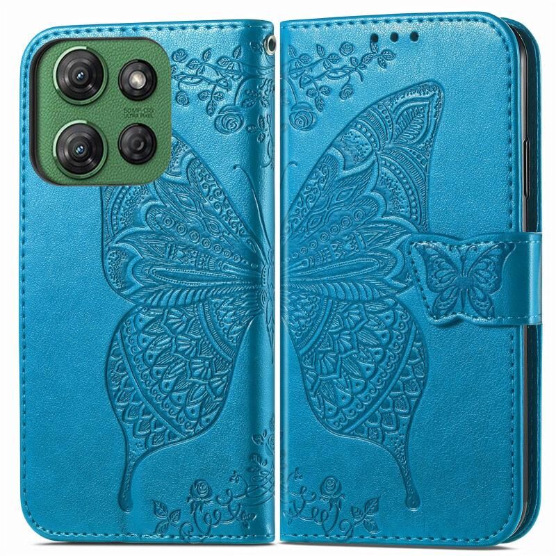 Θήκη κινητού τηλεφώνου από δέρμα με ανάγλυφο σχέδιο πεταλούδας και λουλουδιών για Motorola Moto G Power 2025 (Μπλε)