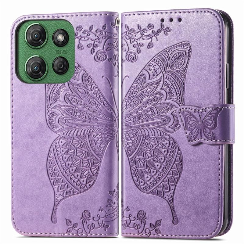 Θήκη κινητού τηλεφώνου από δέρμα με ανάγλυφο σχέδιο πεταλούδας και λουλουδιών για Motorola Moto G Power 2025 (Χρυσό ροζ)
