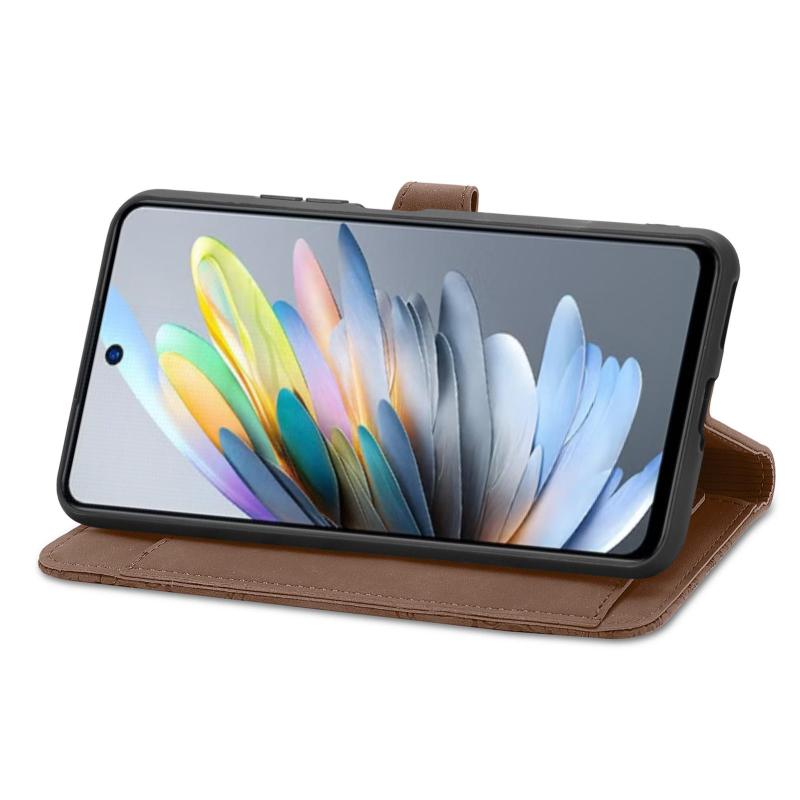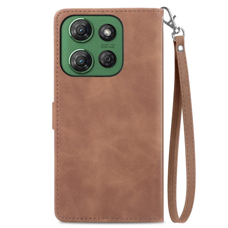 For Motorola Moto G Power 2025 Embossed Flower Zipper Leather Phone Case(Brown)