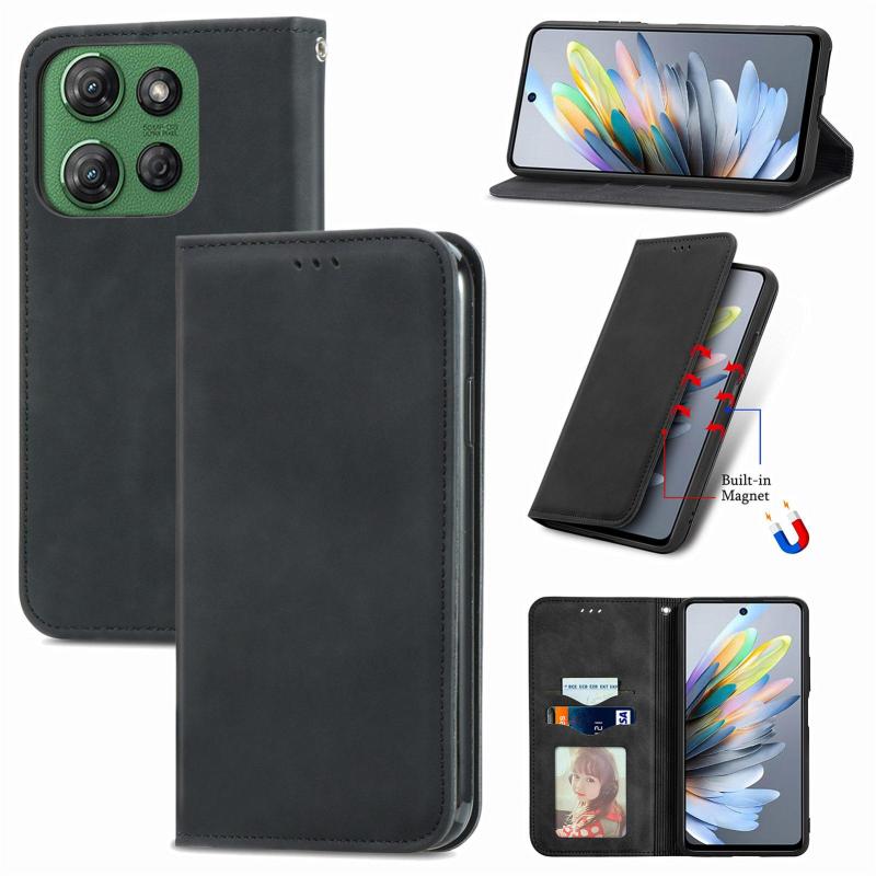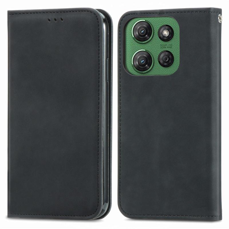 For Motorola Moto G Power 2025 Retro Skin Feel Magnetic Flip Leather Phone Case(Black)