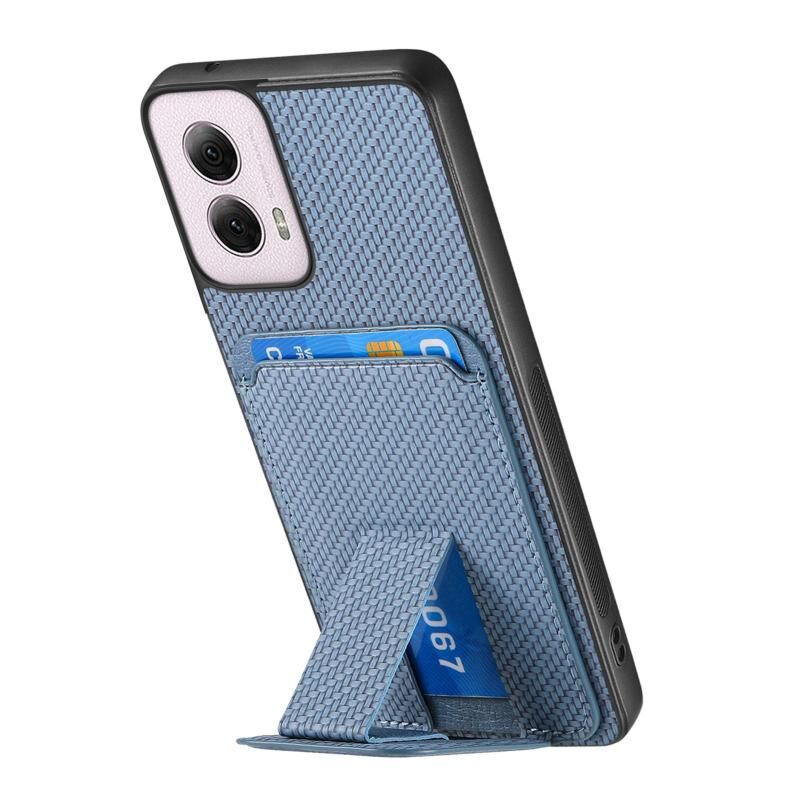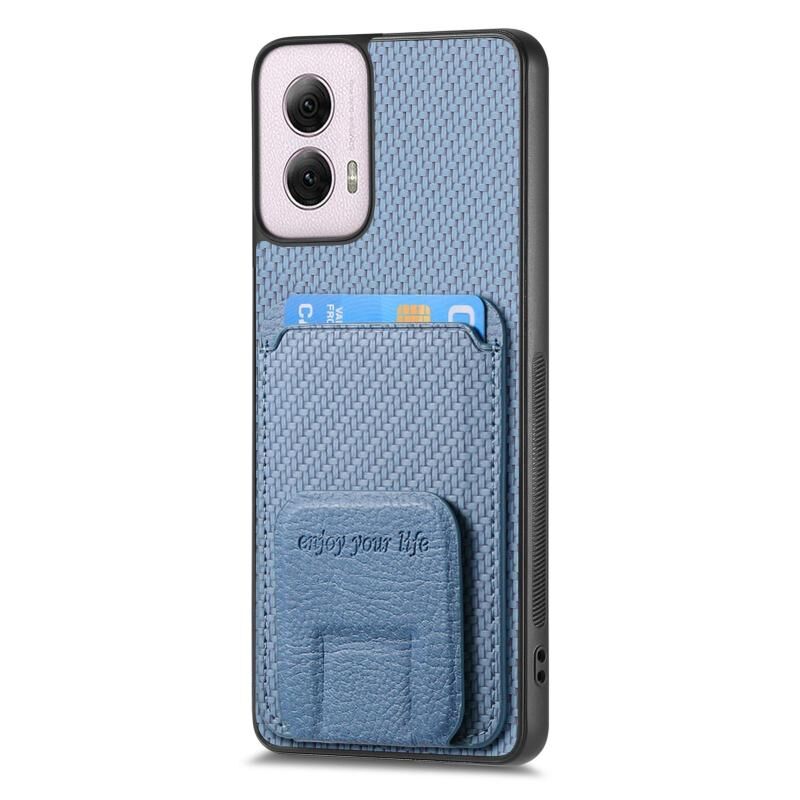 For Motorola Moto G Power 5G 2024 Carbon Fiber Card Bag Fold Stand Phone Case(Blue)