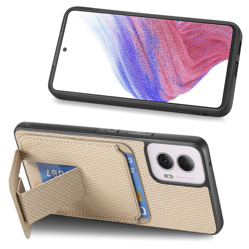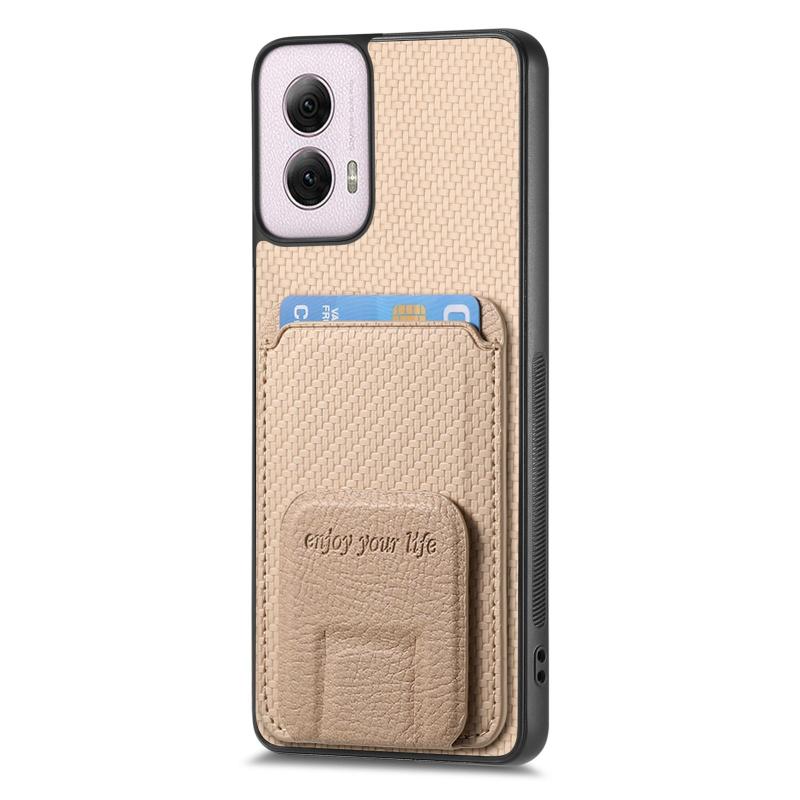 For Motorola Moto G Power 5G 2024 Carbon Fiber Card Bag Fold Stand Phone Case(Khaki)