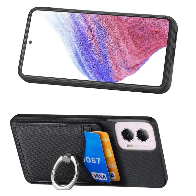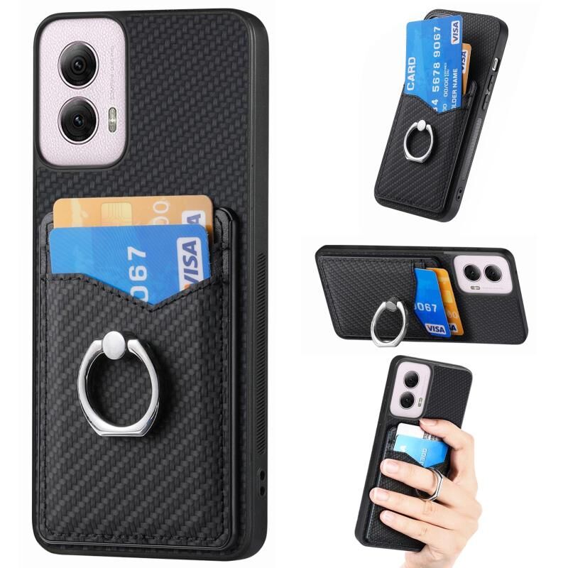 Για Motorola Moto G Power 5G 2024 Carbon Fiber κάρτα πορτοφόλι δαχτυλίδι θήκη τηλεφώνου (Μαύρο)