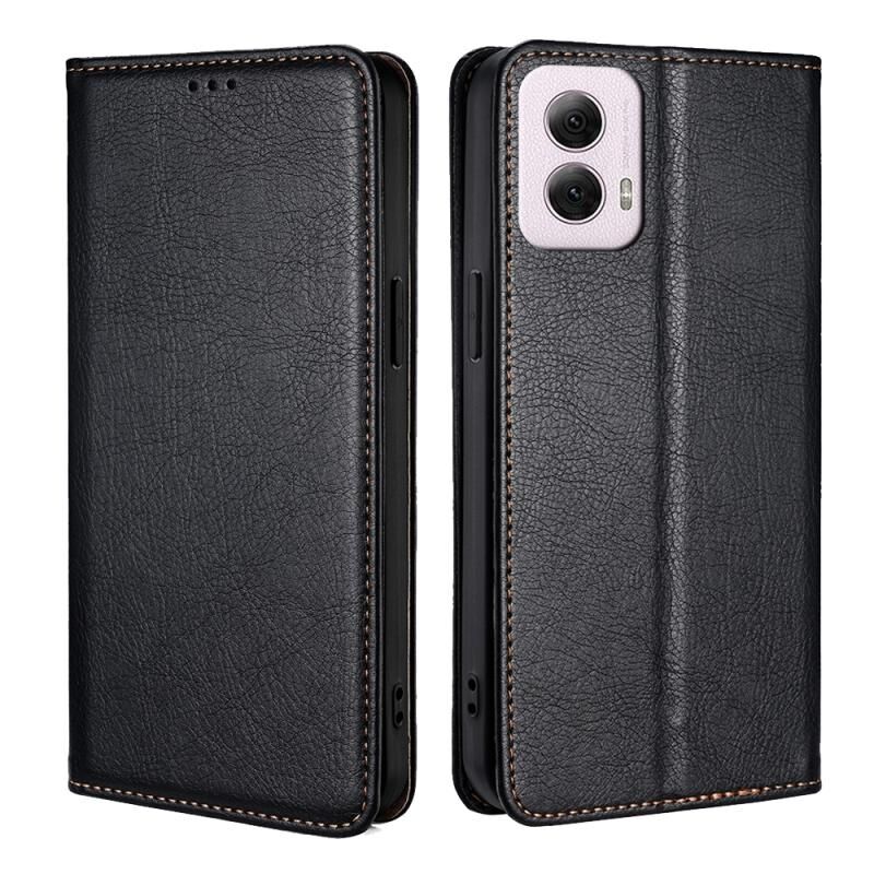 Για Motorola Moto G Power 5G 2024 Γυαλιστερό λάδι στερεό χρώμα μαγνητική δερμάτινη θήκη τηλεφώνου (μαύρο)