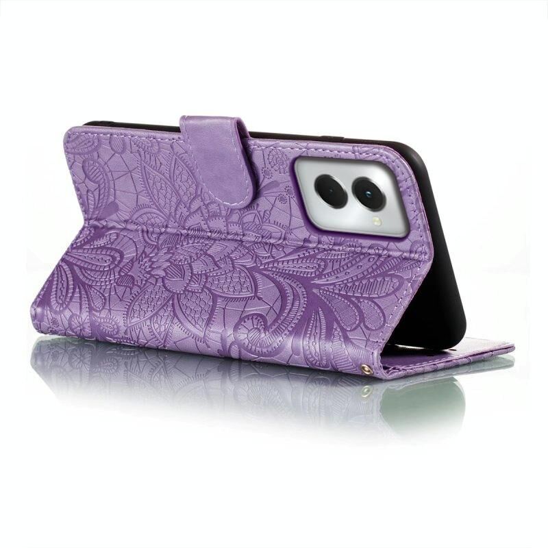 Για Motorola Moto G Power 5G 2024 Δαντέλα λουλούδι ανάγλυφο Flip δερμάτινη θήκη τηλεφώνου (μωβ)