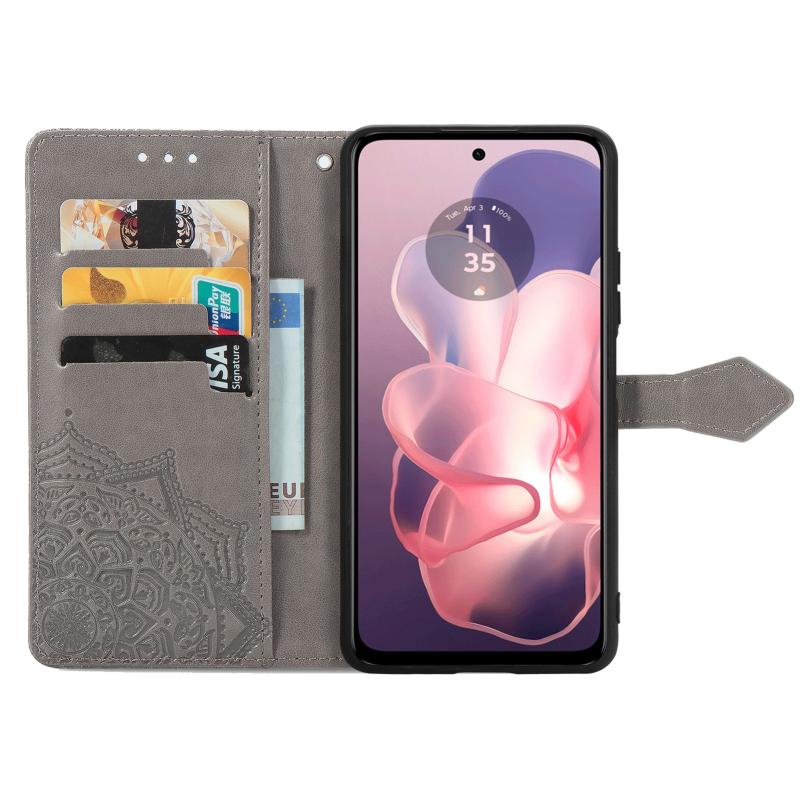 For Motorola Moto G Power 5G 2024 Mandala Flower Embossed Leather Phone Case(Gray)
