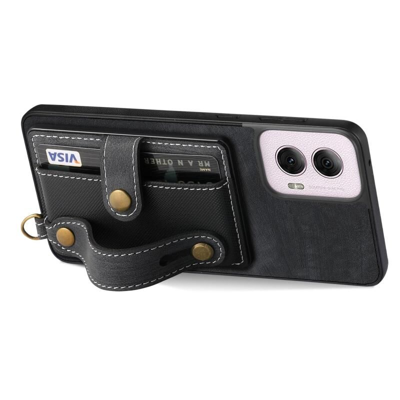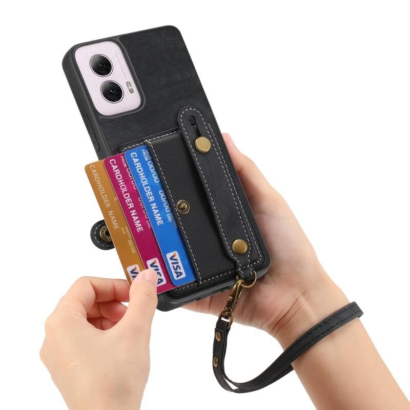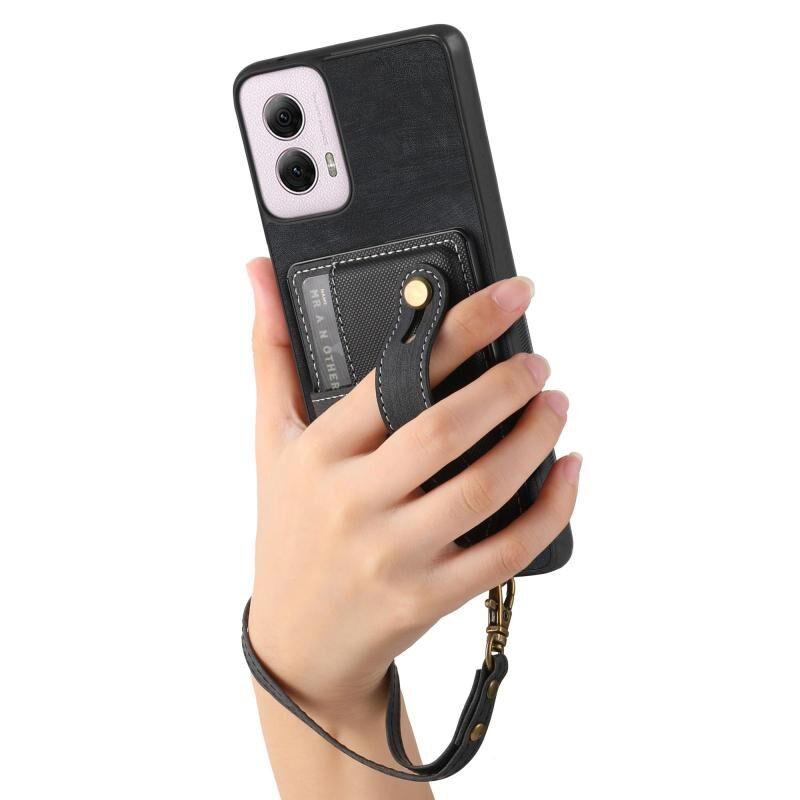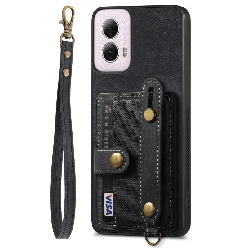 Θήκη κινητού τηλεφώνου από δέρμα με σχέδιο σταυρού και λουρί καρπού για Motorola Moto G Power 5G 2024 (Μαύρο)