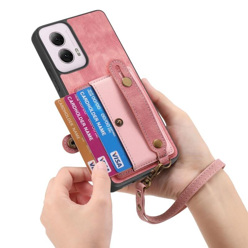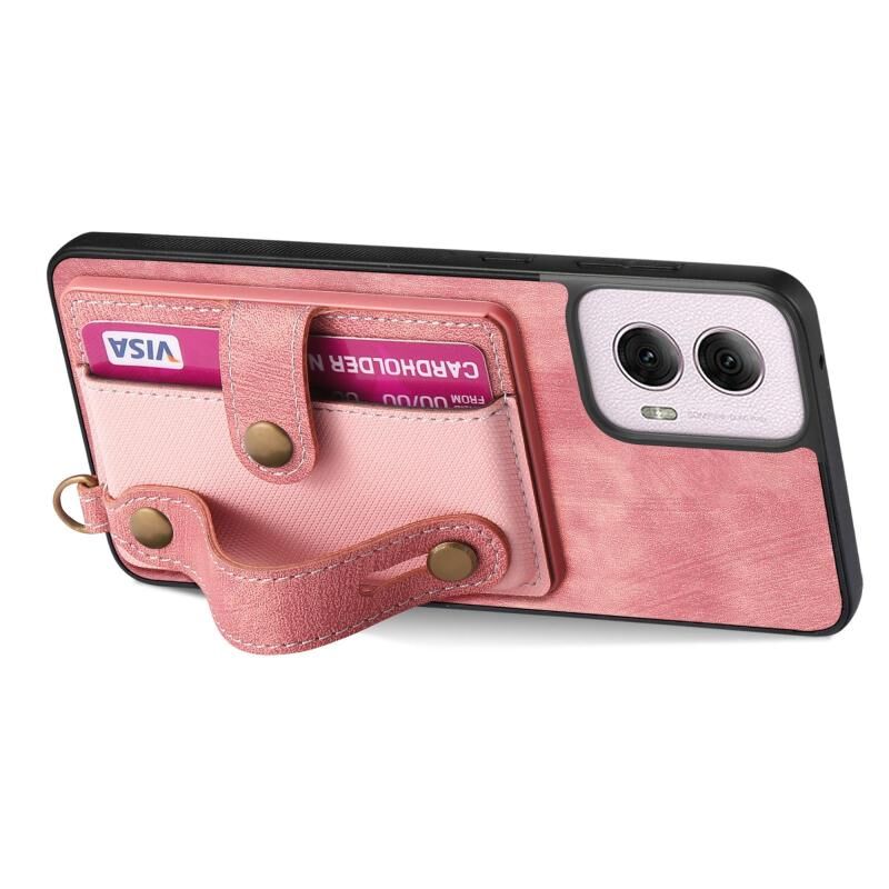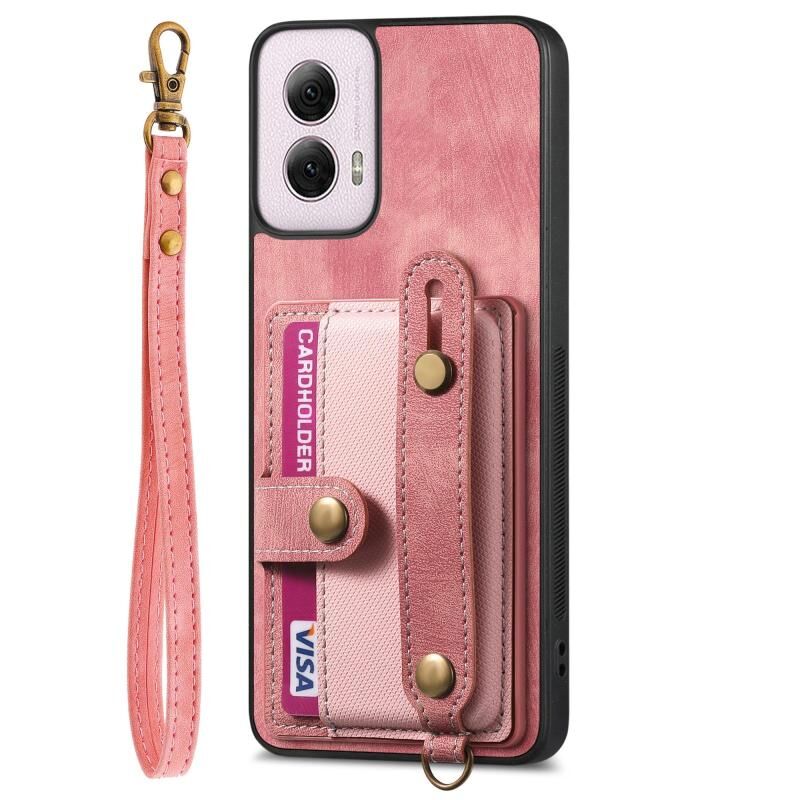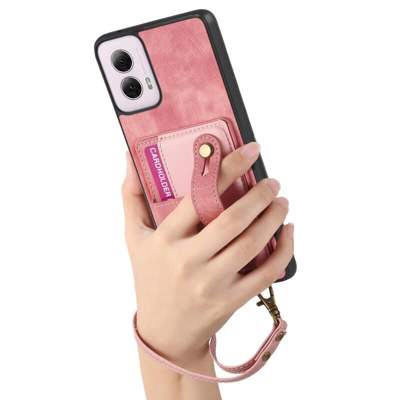 Θήκη κινητού τηλεφώνου από δέρμα με σχέδιο σταυρού και λουρί καρπού για Motorola Moto G Power 5G 2024 (ρόζ)