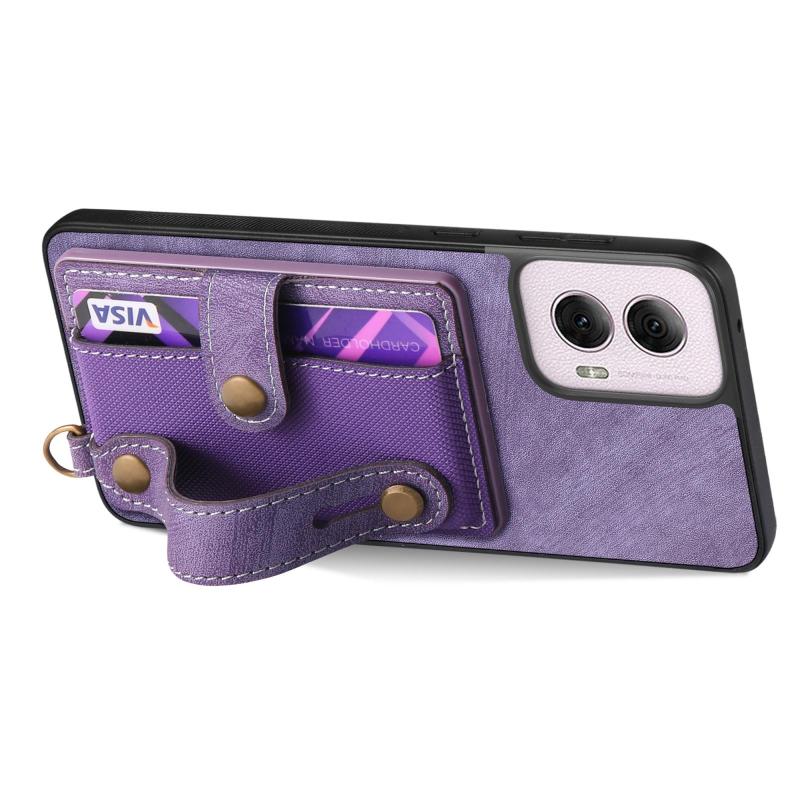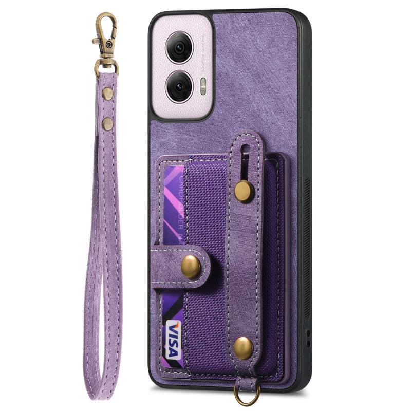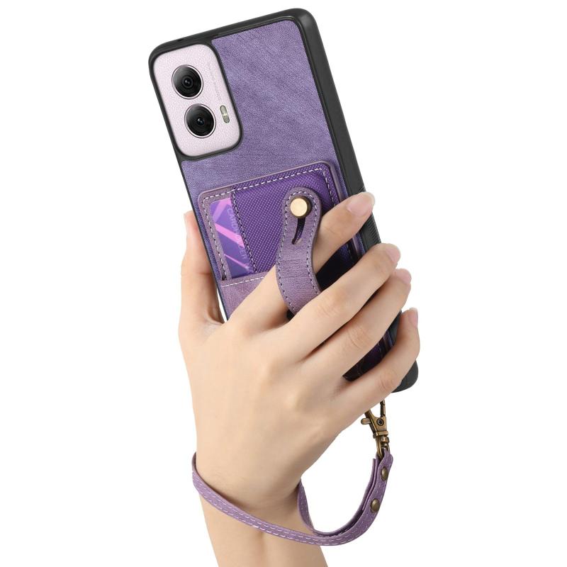 For Motorola Moto G Power 5G 2024 Retro Cross Wristband Wallet Leather Back Phone Case(Purple)